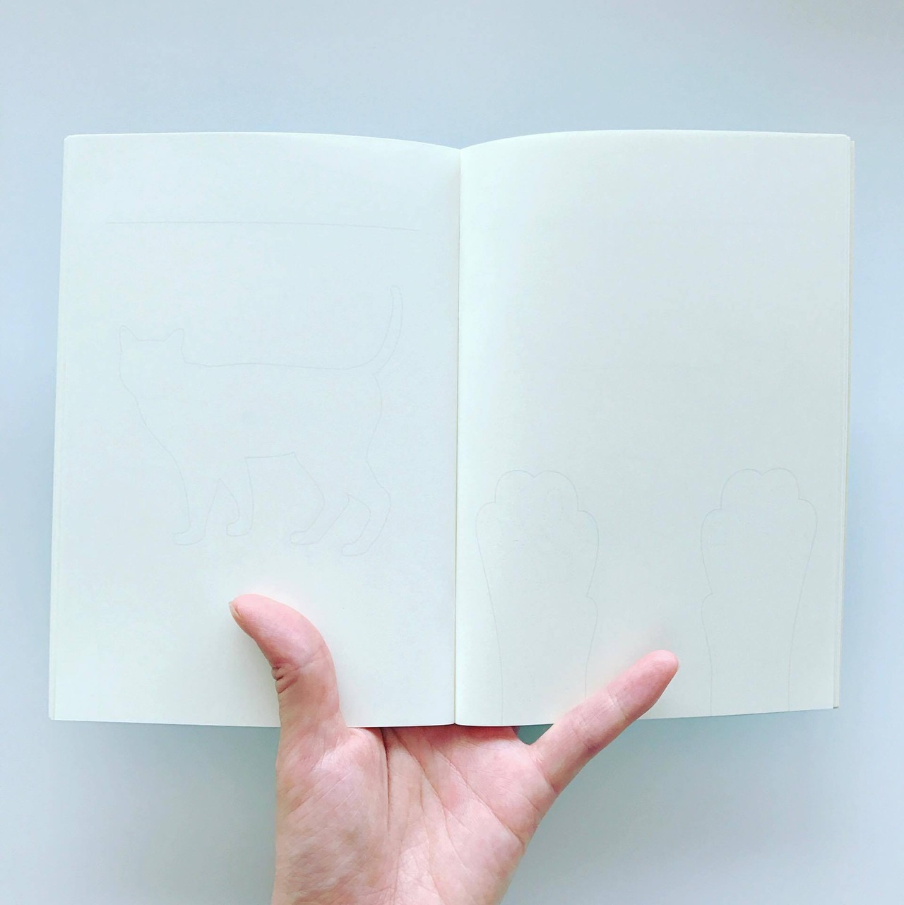 ネコ科動物に特化して、記録をすることができる「nekoka note」は、動物園や猫カフェなどで大活躍します。イラストが苦手な人にも楽しく記録をしてもらいたいという思いをこめて、見開き左には体全体のシルエット、右には前足のシルエットが薄く印刷してあります。